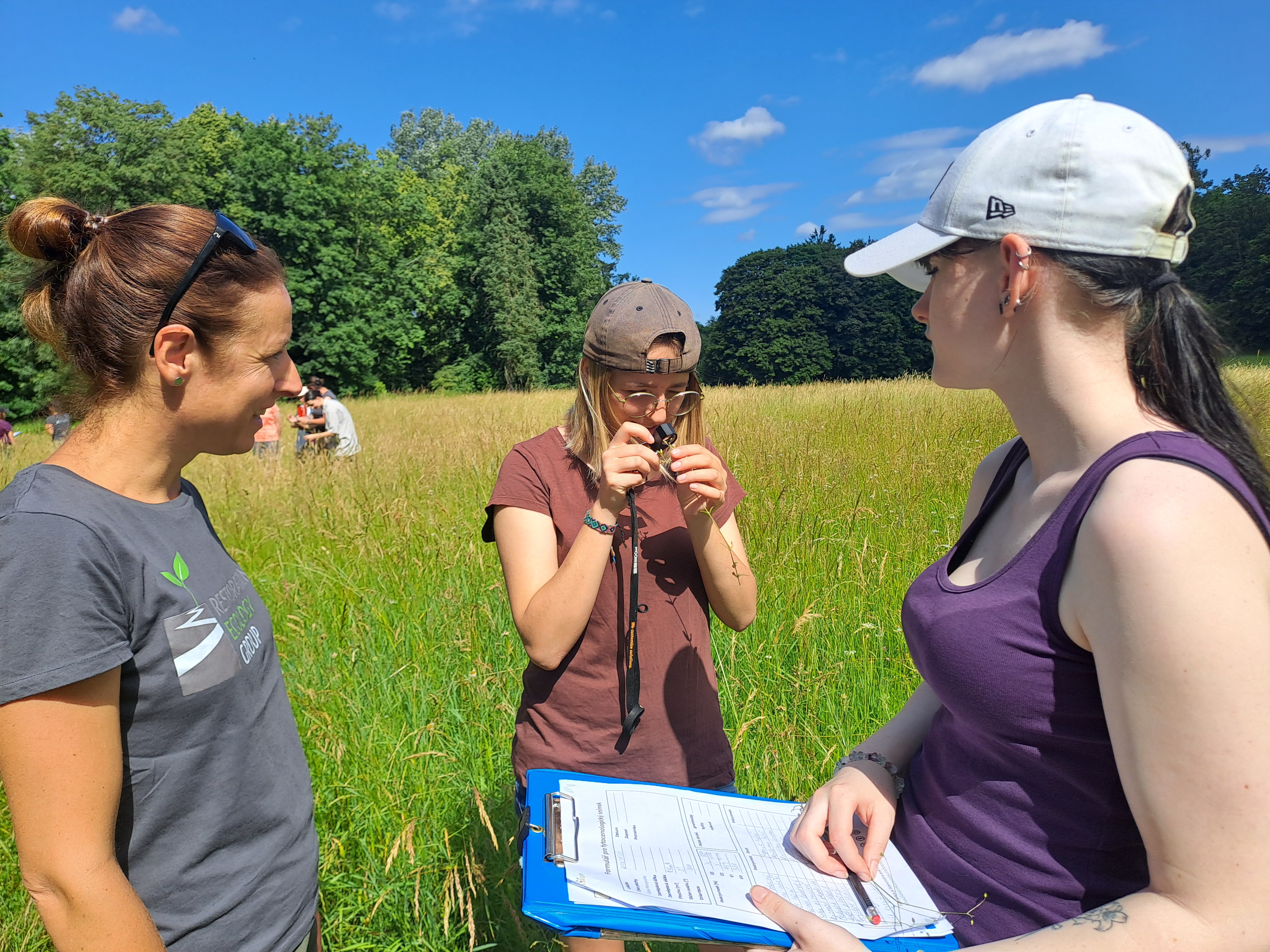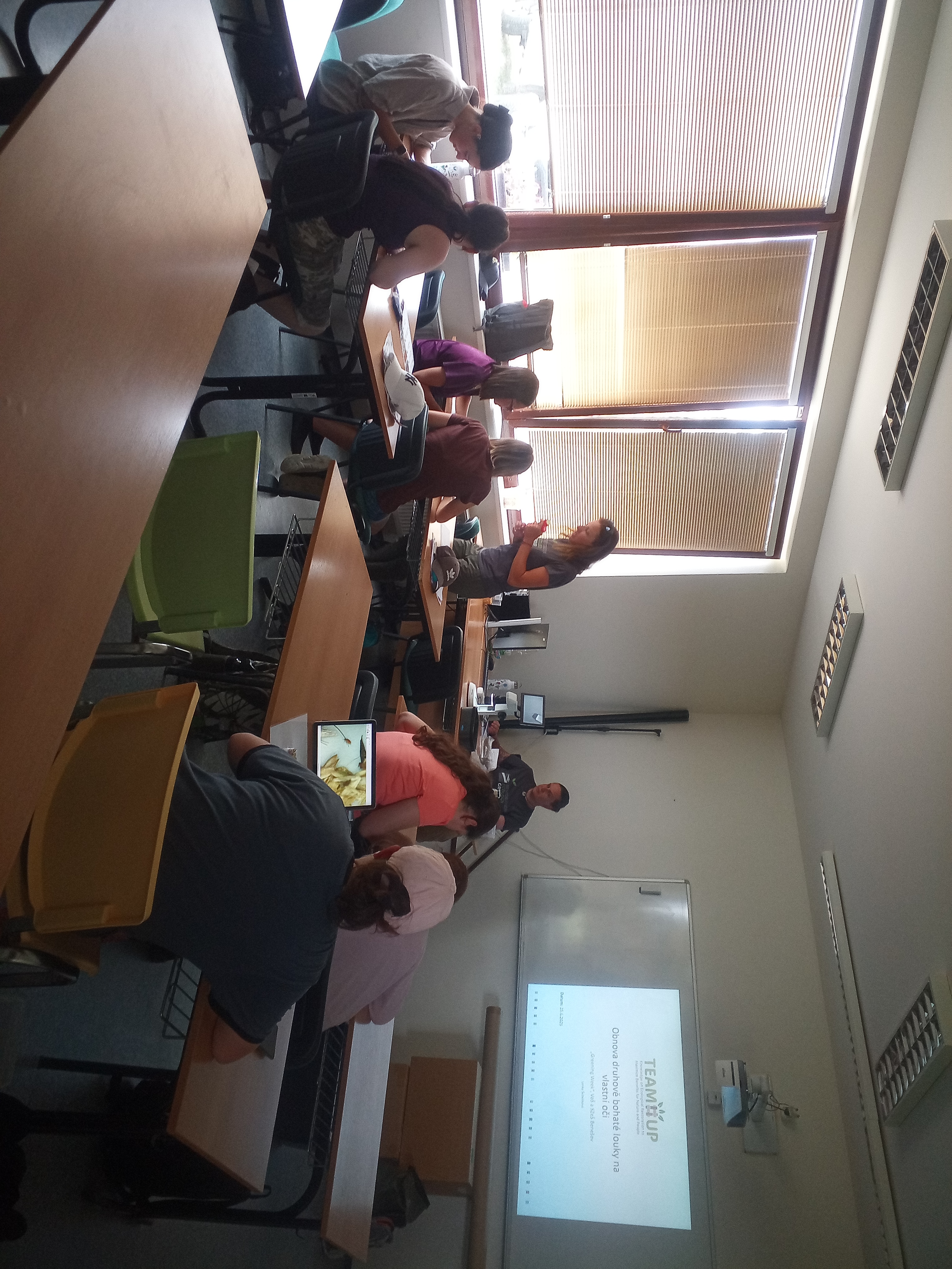 During the last week of June, the students of the partner Agricultural College and Agricultural Secondary School Benešov participated in the first run of the advanced course focused on the establishment of the species-rich grasslands. The week-long event called "Greening Week" took place at the Agricultural College and Agricultural Secondary School Benešov. During the first days, the students learnt the theoretical principles of ecological restoration in the urban environment and methods of establishing species-rich meadows. They also worked on an assignment in which they mapped the urban grasslands in the city of Benešov and proposed methods for improvement of the species composition, and the creation of better connectivity across the urban area for insect species. The next two days were led by the Restoration Ecology Working Group from the University of South Bohemia and were purely practical. Students first tried out mapping of a donor site for collecting a regional seed mixture. They had an opportunity to collect seed mixture using a brush harvester, as well as collect individual species by hand. They looked closely at seeds in the brushed seed biomass using binocular lenses and evaluated the success of the restoration of a demonstration site established this spring. During a one-day excursion, they saw a large-scale restoration project of a landscape park partly using regional seed mixtures, the seed production fields where regional seeds are produced, and a green roof that was sown with species-rich regional seed biomass. We closed the excursion in the Bohemian Karst with a view of the largest limestone quarry in the Czech Republic. We believe that despite the very hot days, the students gained valuable information and experience from the program, and we look forward to seeing them in the next school year. All the girls are eager to participate in the exchange excursion to Norway and will be working hard on their student projects from September.