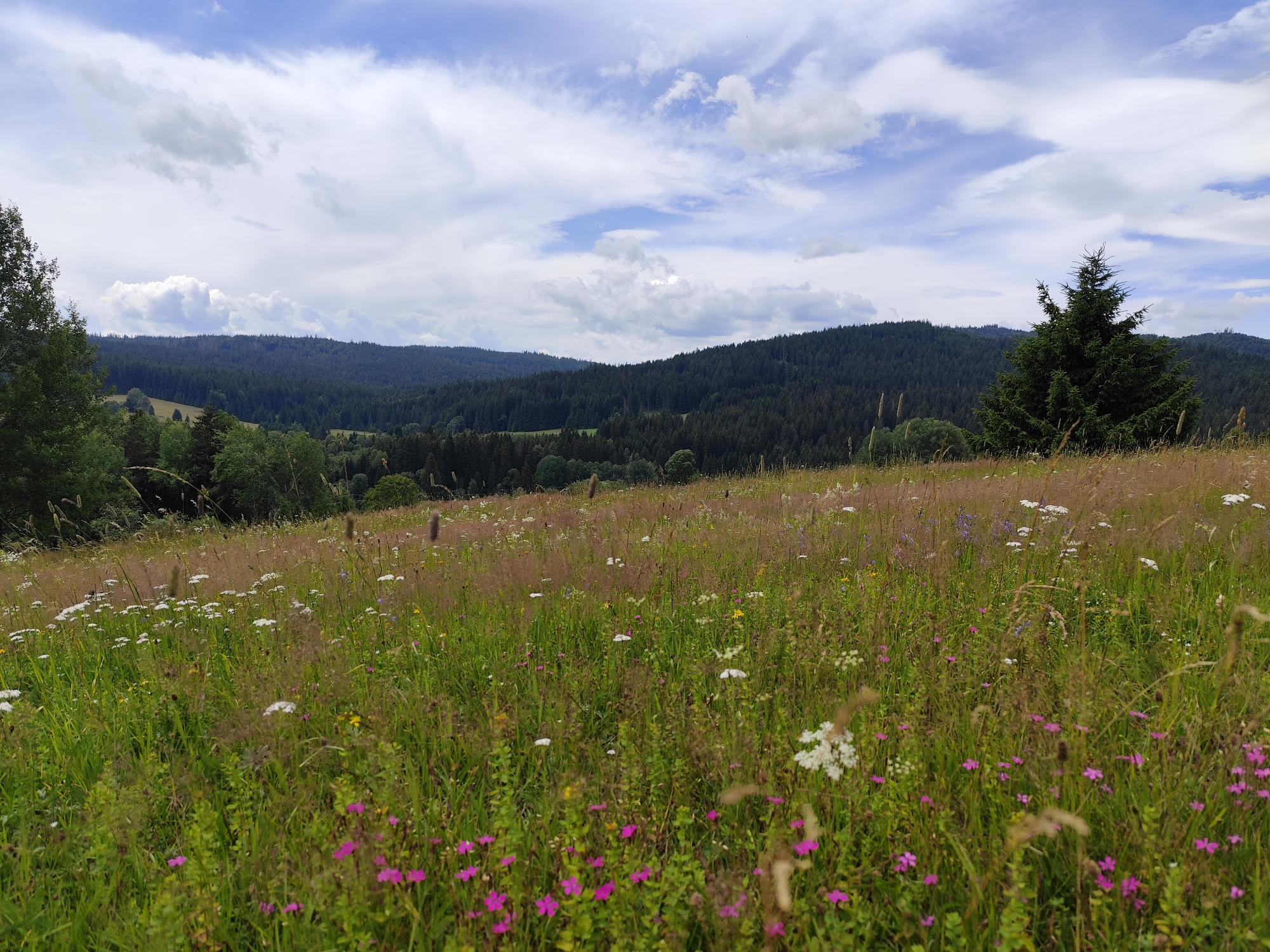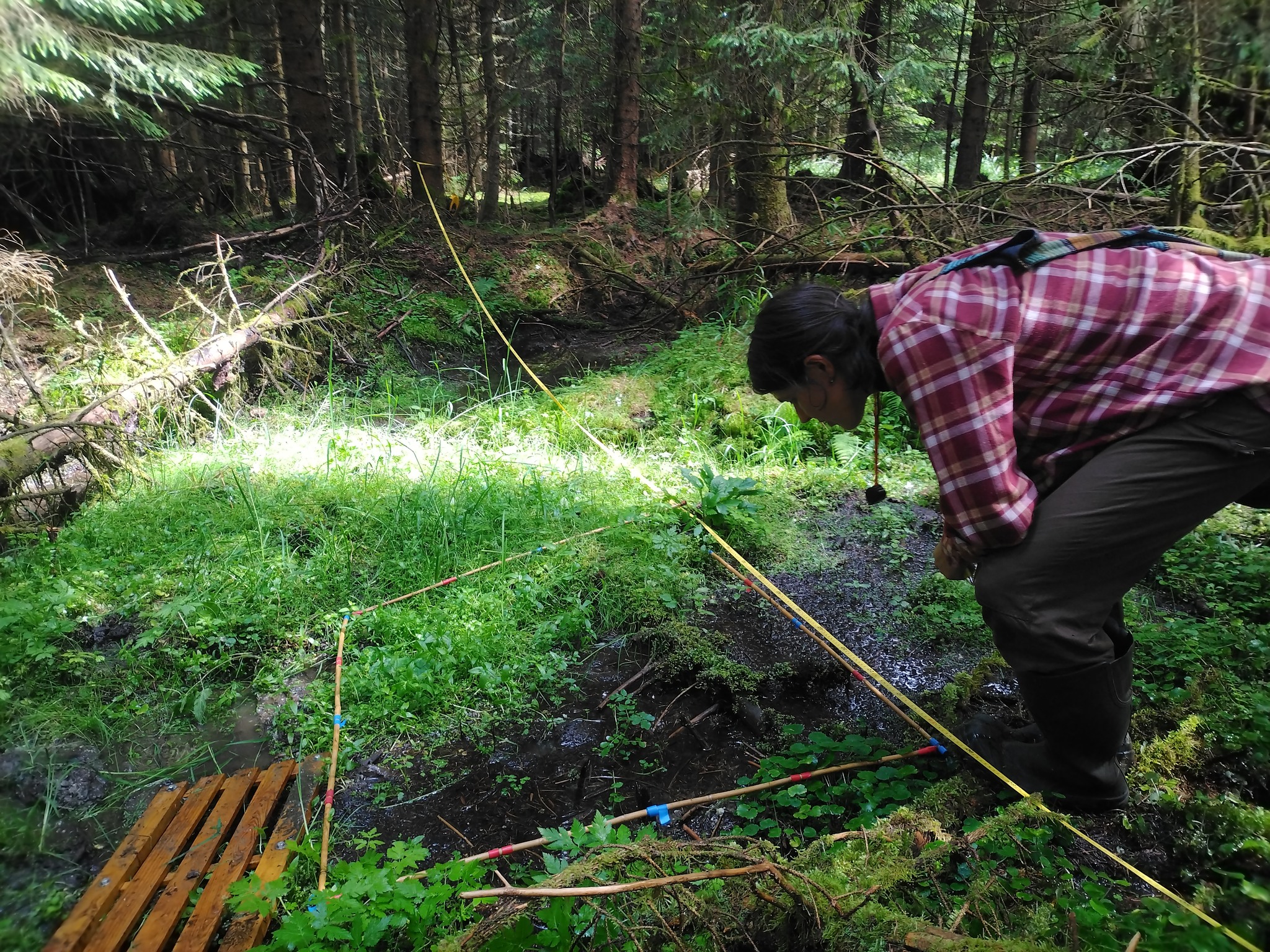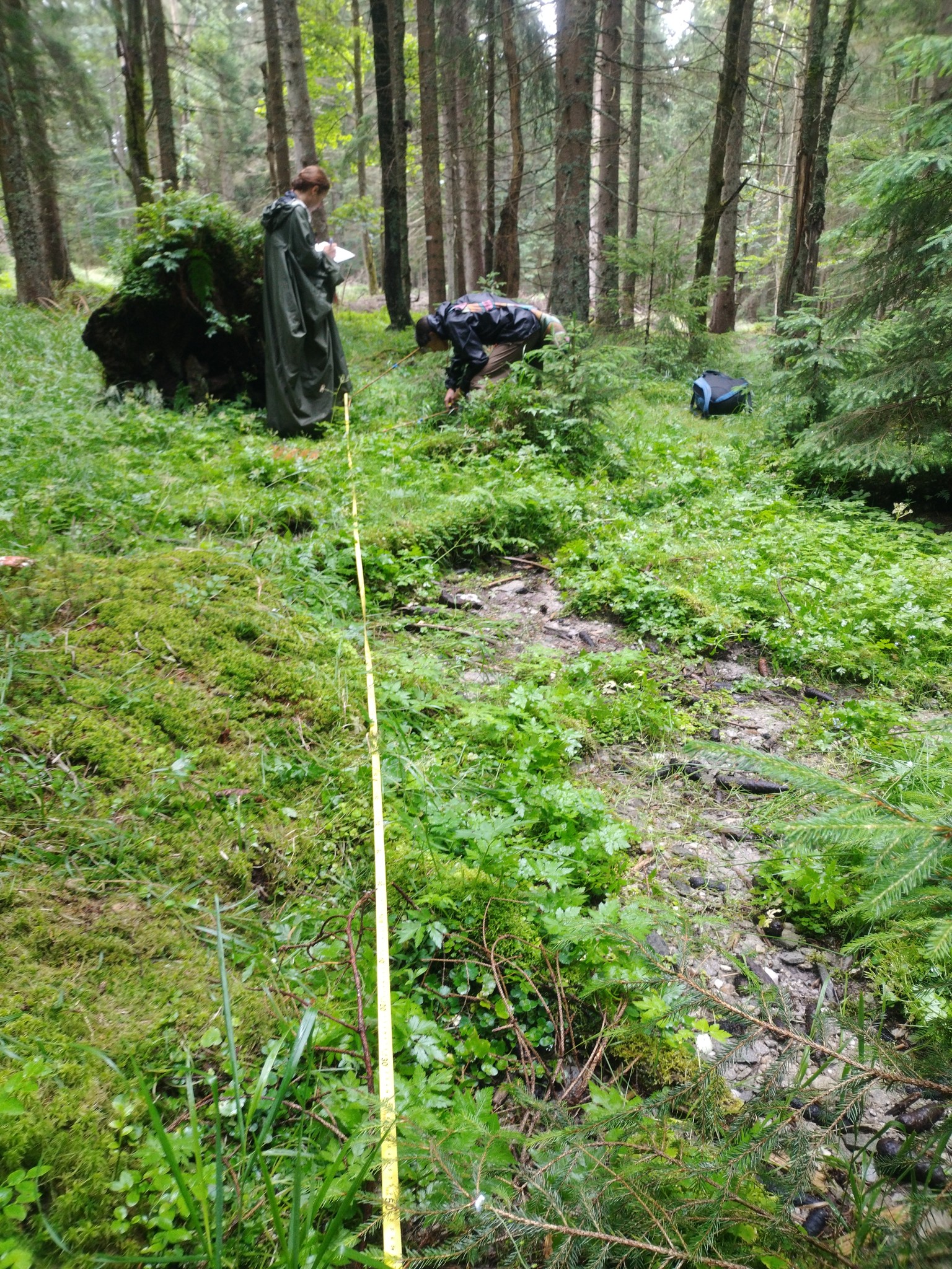 After a year, we have returned to vegetation sampling of the Šumava springs. We have just completed our second three-day field trip, during which we visited 20 springs throughout the Šumava Mountains, from Gerlova Huť to the right bank of Lipno reservoir. However, we still have many new locations and adventures ahead of us. We use vegetation transects to determine whether the vegetation of the restored springs is approaching that of preserved sites that were not drained in the past.