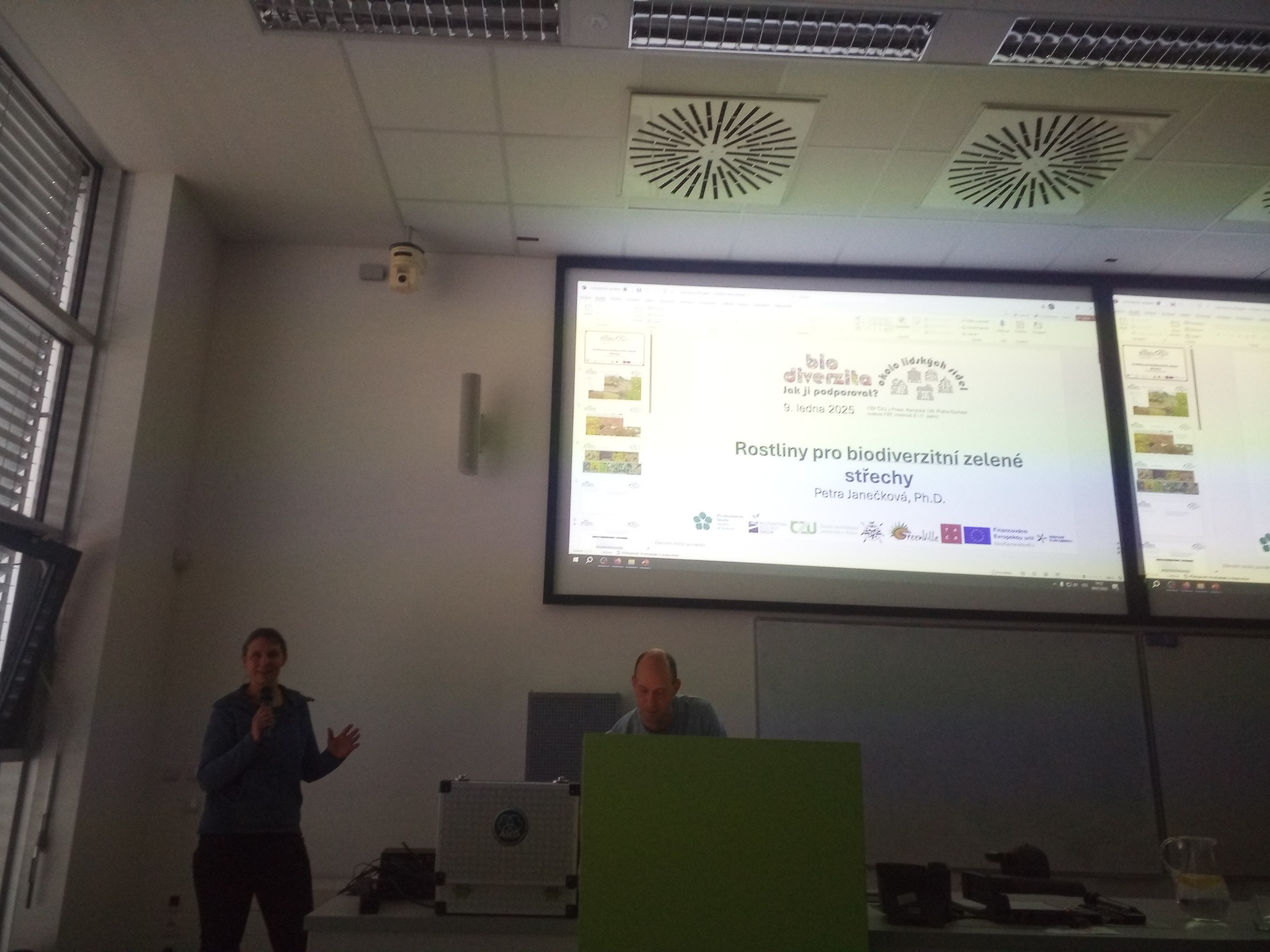 Petra Janečková shared her knowledge about the vegetation on green roofs with the seminar participants on Thursday, January 9th. In an ongoing project, Petra had the opportunity to visit a variety of green roofs and get an overview of the rare and also invasive plant species occurring there.