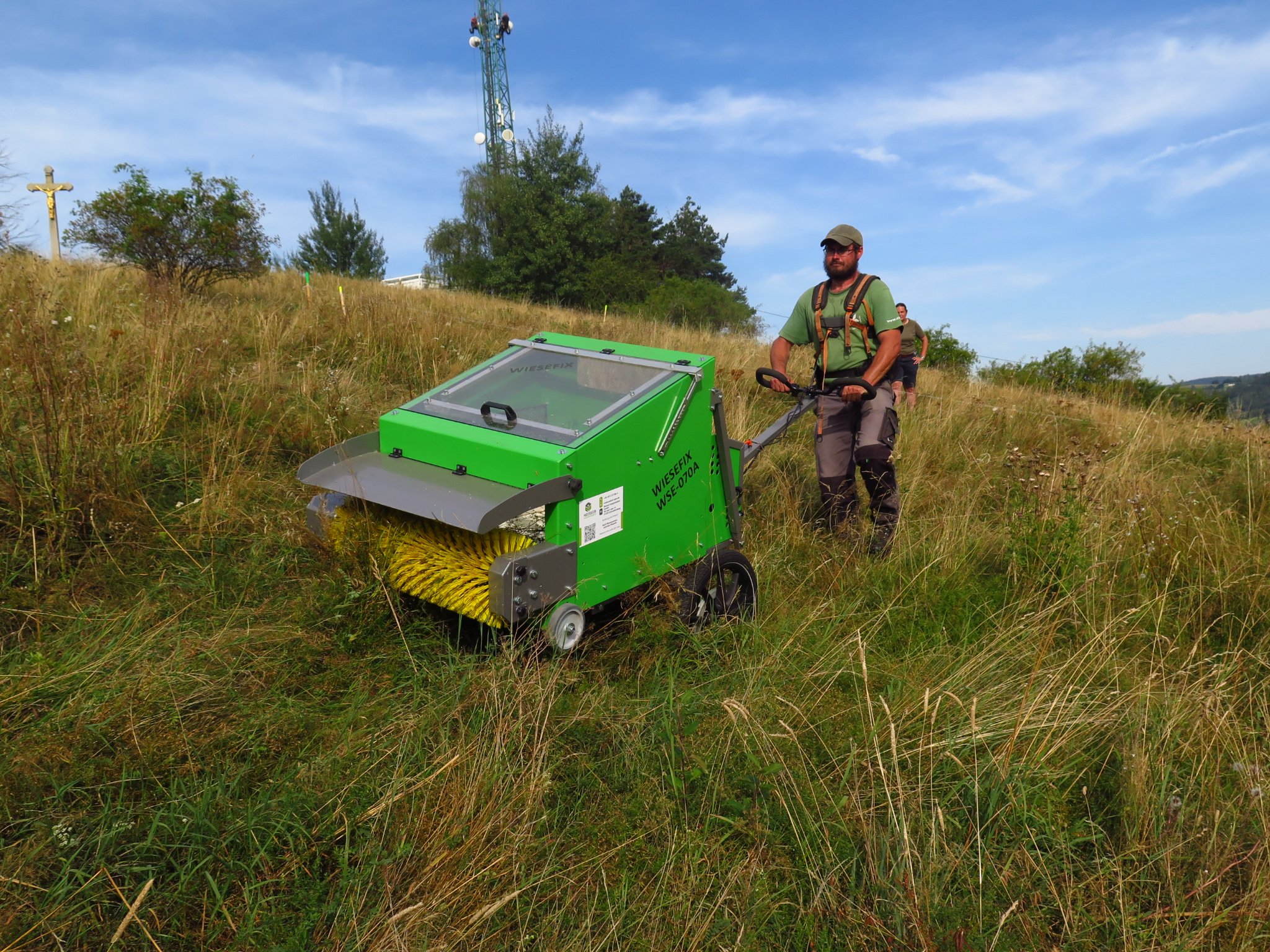 Recently, we have intensively dealt with the topic of regional seed mixtures thanks to the project called 'Regional seed mixtures as an effective tool for protecting the diversity of grassland habitats' funded by Norway grants. We are testing various machines for brushing donor stands. And we are not the only ones who deal with this topic. For example, in Prague, they are testing their hand-made brushing machine. We agreed on cooperation and we will compare all the brushing machines at several localities in the Prague region next year.